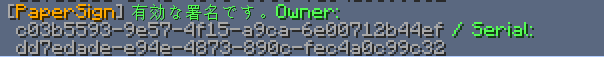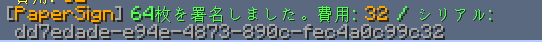 プラグイン説明署名プラグインこのページの見出し署名プラグイン 署名プラグインは、あなたの署名入りの紙を作成できるプラグインです。 署名された紙は改ざん防止機能があり、本人が作成した証明として使用できます。他のプレイヤーからの信頼を得たい取引や、証明書として利用することができます。